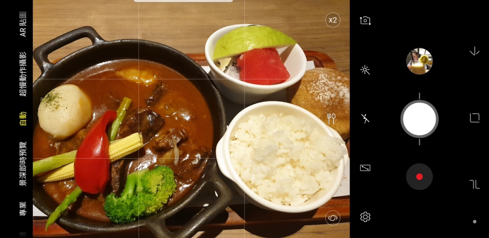 相機功能基本上維持與 Galaxy Note8 相同的功能外,再加上 Galaxy S9+ 的超慢動作攝影,並在 AR 貼圖上有更加升級的應用,我們往下慢慢的來介紹。