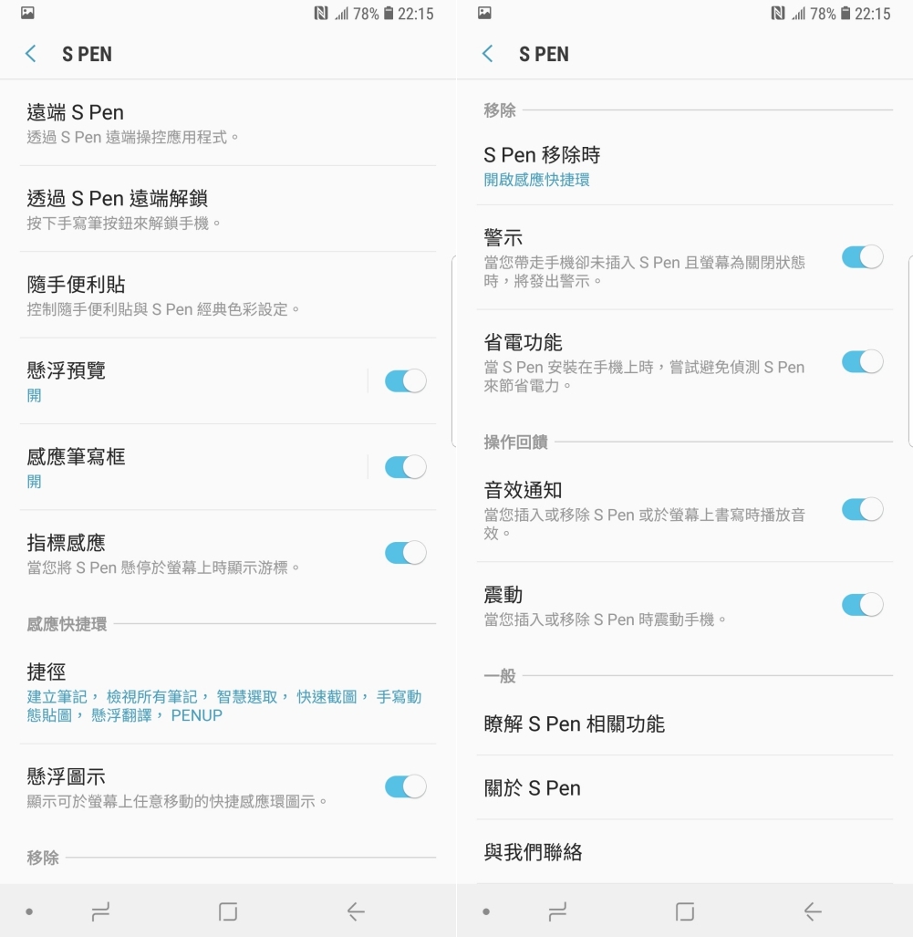 在稍稍複習了 Galaxy Note8 就加入的功能後,我們接下來就來進入重要的部份,也就是這次 S Pen 這次帶來新的實用功能,在設定裡,可以看到 S Pen 多了一些設定,特別要注意的就是「遠端 S Pen」及「透過 S Pen 遠端解鎖」。