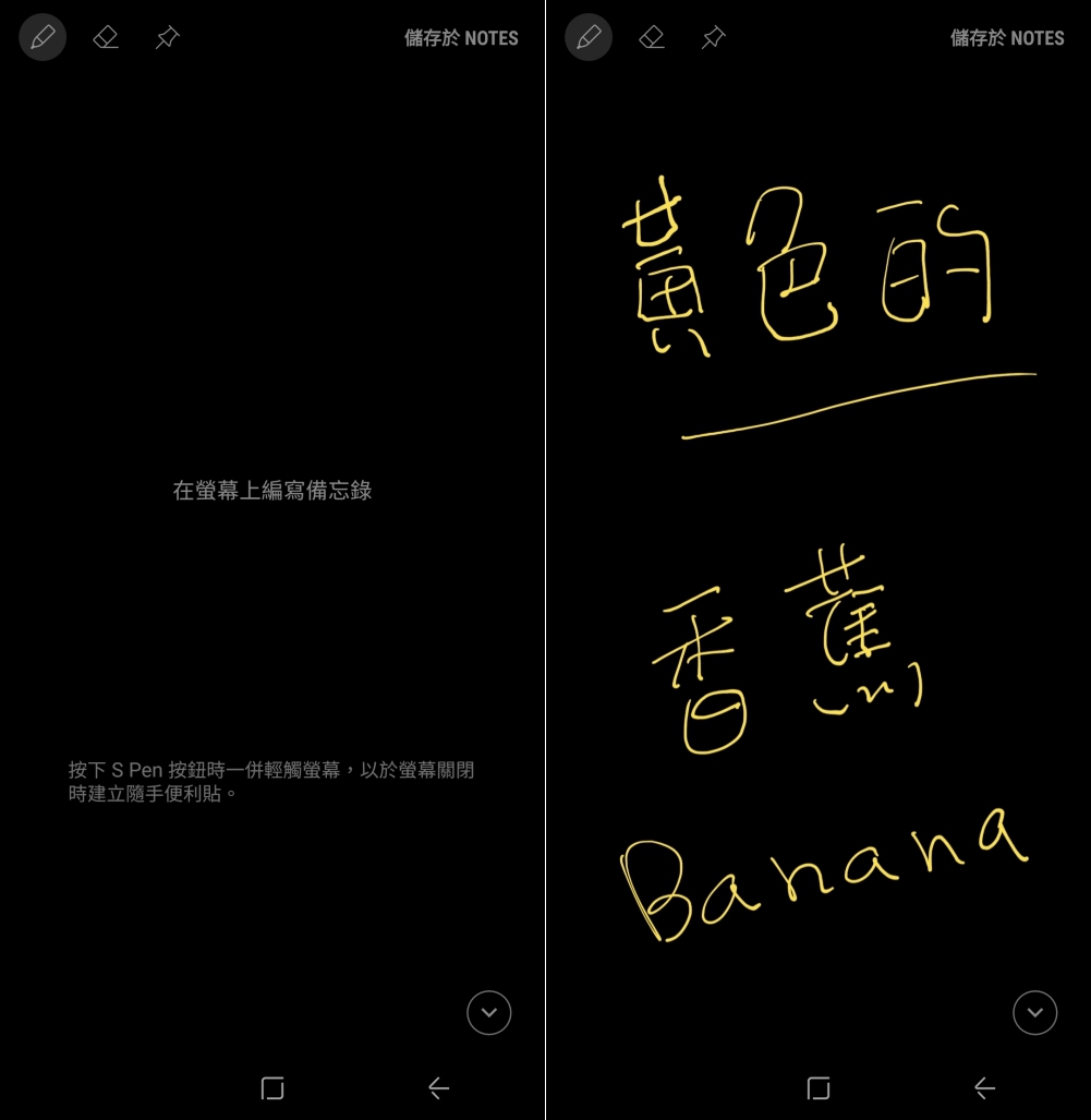 還記得前面阿湯提到每款 Galaxy Note9 所搭配的 S Pen 顏色也有所不同,在預設的情況下,螢幕隨手便利貼的功能,書寫的顏色會跟隨你的 S Pen 顏色,像阿湯是用黃色的 S Pen,寫出來也是黃色的字,非常的特別。