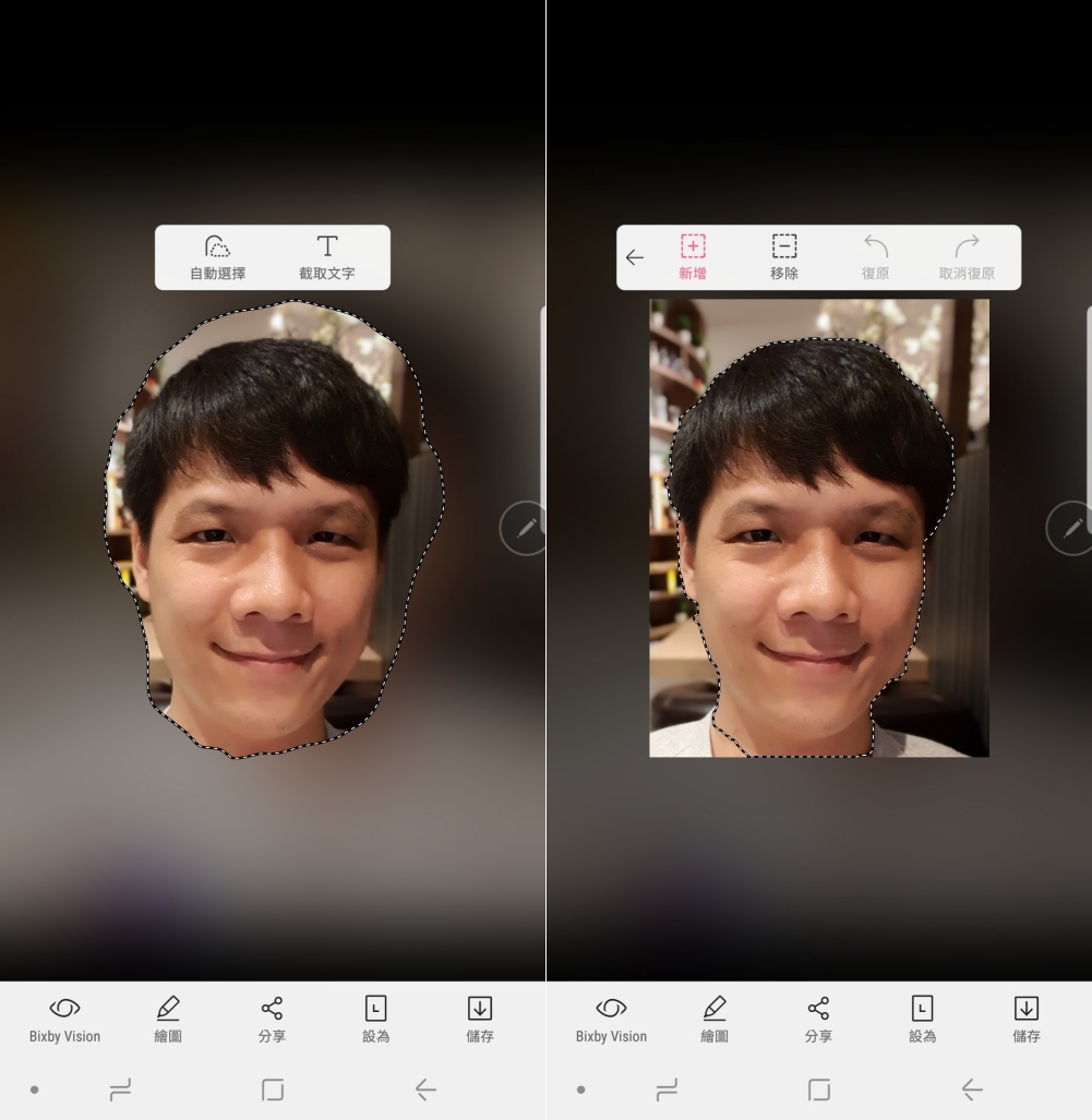 智慧選取功能,用來去背超方便,只要「大約」的選取要去背的主體範圍,再選擇自動選擇,就會相當的準確幫你圈住主體,如果有遺落的也可以自行再增減範圍,就可以快速的產出去背圖檔。