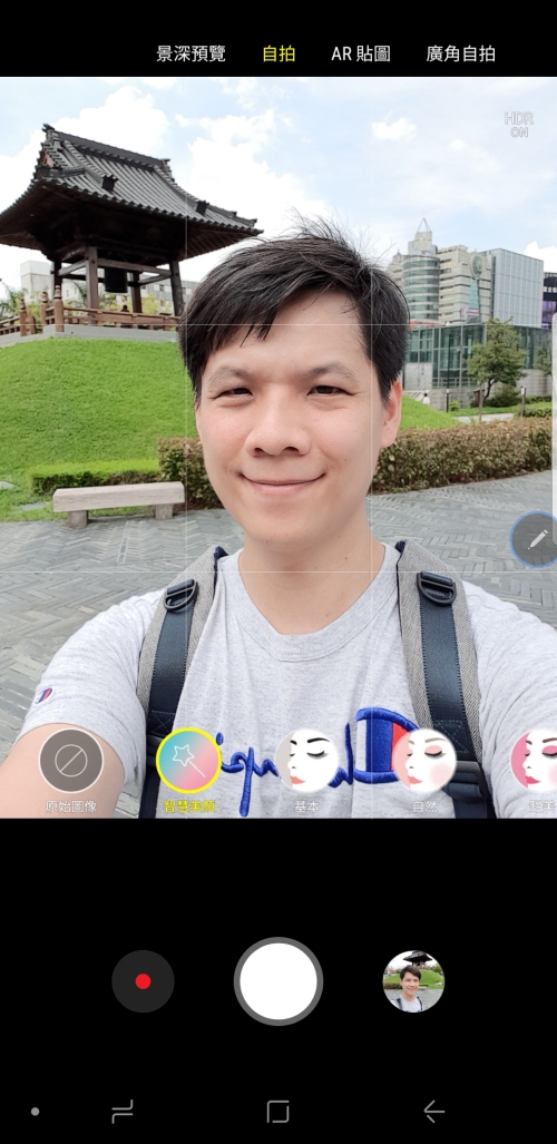 自拍的部份也只需要用內建的智慧美顏模式就可以把自己拍的