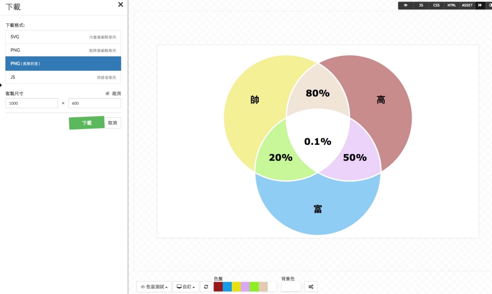 如果不付費使用未來只能下載 PNG 檔案,不過對大部份人來說只要能下載使用就夠了,除非是公司有特殊專業需求。