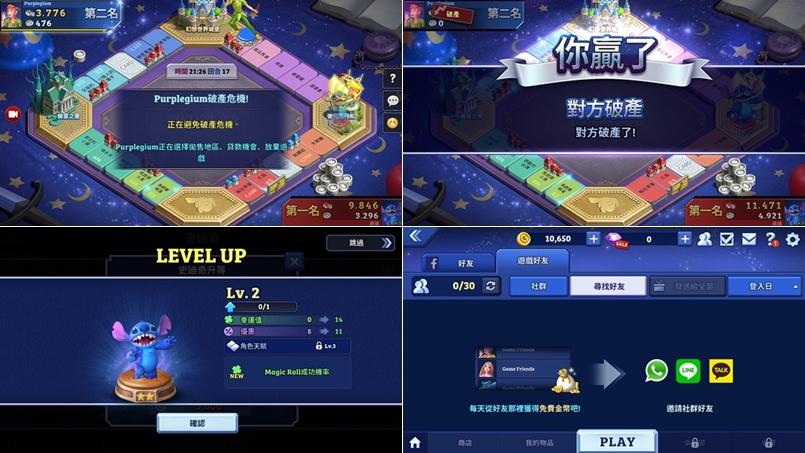 跟大富翁類似,但地圖更簡單就是繞一圈,以迪士尼人物為主,畫面精緻遊戲快速,也能練等升級,關卡與地圖樣式眾多,一個人沒事也可以玩。