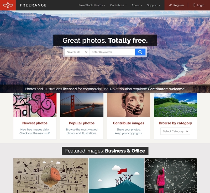 跟類似的網站一樣,輸入關鍵字或從類別進入即可,可選擇要針對照片、插圖篩選或全部搜尋。