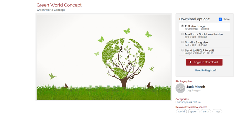 像這樣一張植物拼成的綠色地球,感覺就很適合做環保或旅遊的相關設計,提供四種尺寸,有全尺寸、社群軟體、部落格,也能連到 PIXLR 編輯。