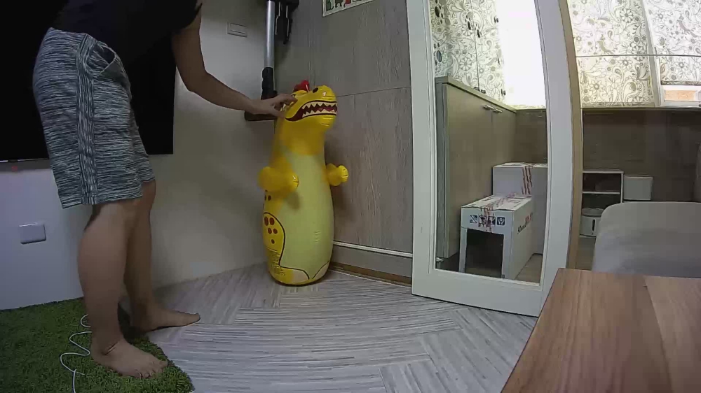 阿湯自己也以身做賊試看看,偷走自己客廳的小恐龍不倒翁....