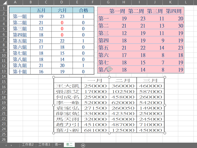 因為是圖片格式,所以要怎麼拉怎麼變形都 OK,下面阿湯就放了三張表格,如果需要同時看很多份就可以用這個方式,不用切來切去,很方便。