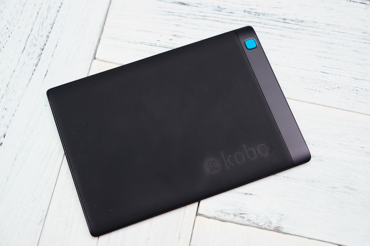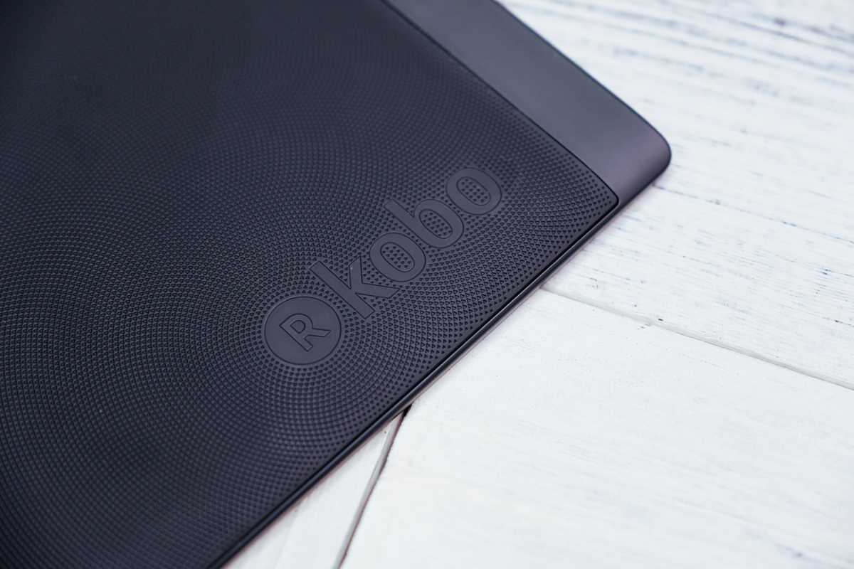 背面的大量凹槽是塑膠材質,並壓有樂天 kobo 的 logo,樂天 kobo 的電子書閱讀器在設計上可以算是業界中排名前幾的了(全球來說)。
