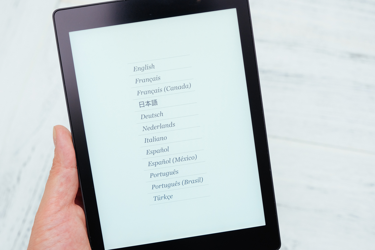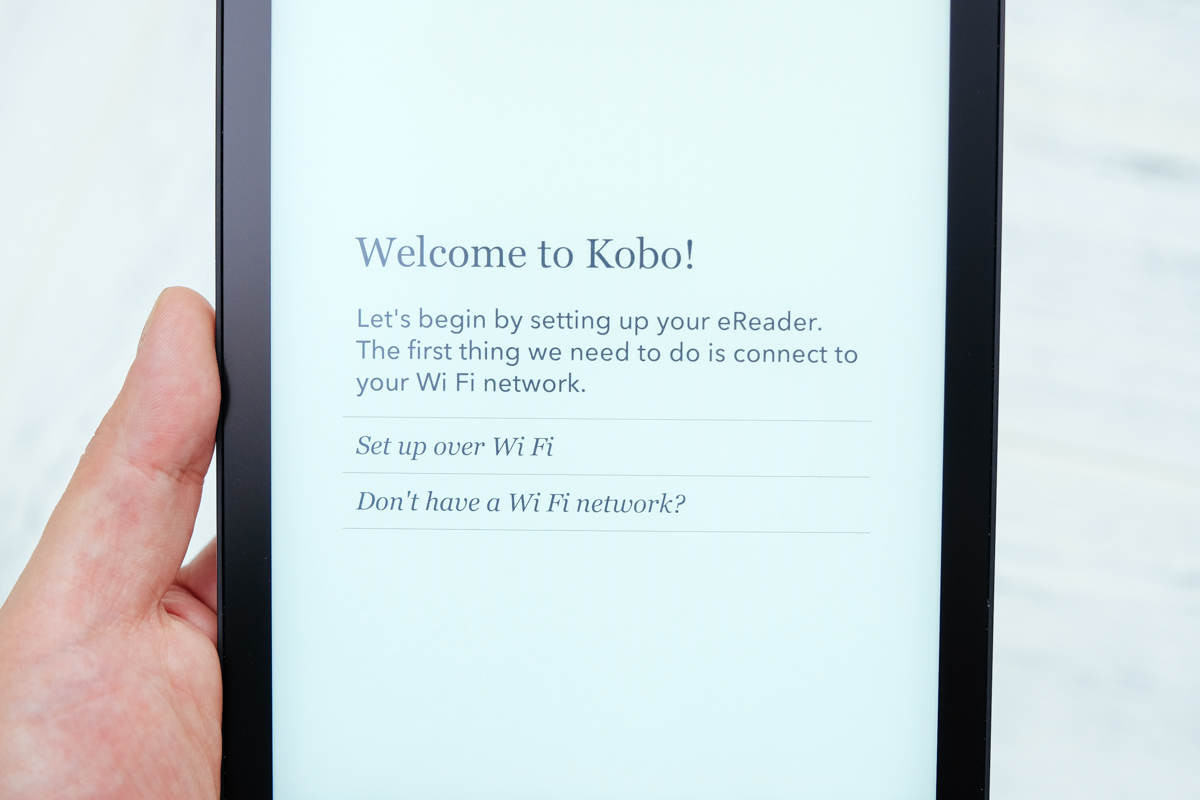 電子書閱讀器比起使用平板來看書好處多很多,除了閱讀文字的畫面更舒適外,設定也更加精簡,第一次進入不必像手機或平板一樣有著繁瑣的設定步驟才能進到桌面使用。首先選擇語系,目前稍稍可惜的是樂天 Kobo 系列的電子書閱讀器還沒有支援繁體中文介面,不過閱讀繁體中文的書籍是沒有問題的,另外就算選擇英文,其實介面的英文單字都是很基礎的,不用擔心看不懂。