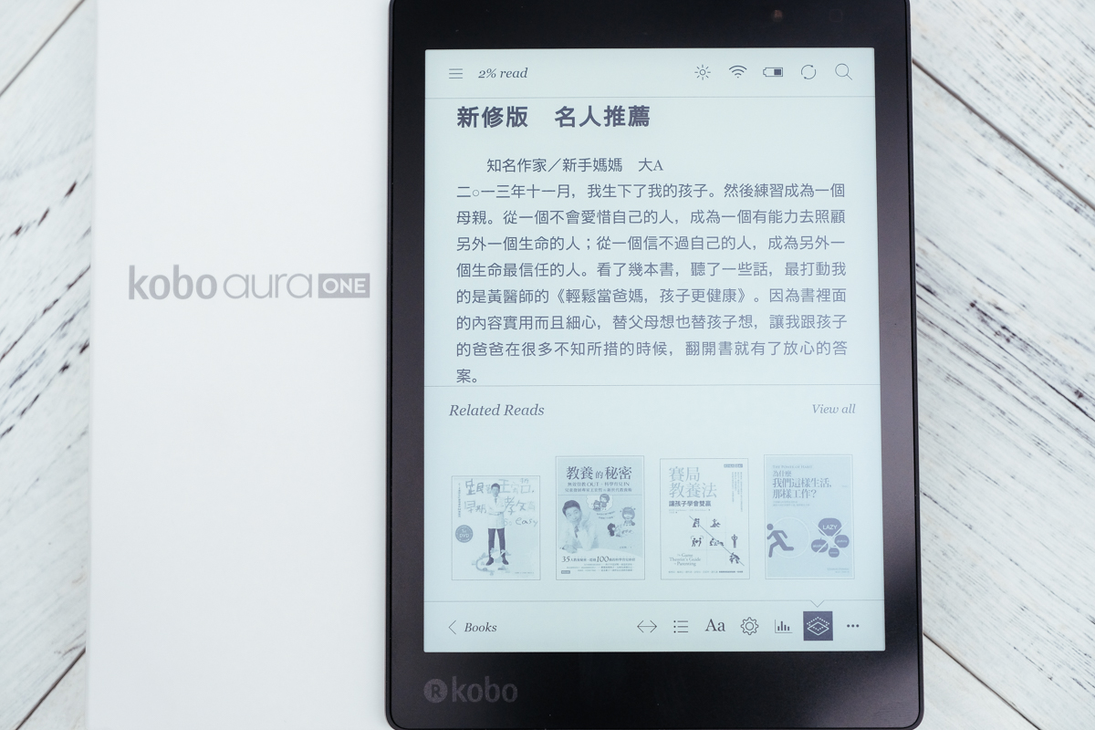 樂天Kobo),你不需要東找西找電子書資源,線上直接購買就可以隨時同步到 Kobo aura ONE 上來閱讀,基於種種理由真的是使用電子書閱讀器來看書比起手機平板或電腦都來的更好,有在看書的話有什麼理由不買呢?