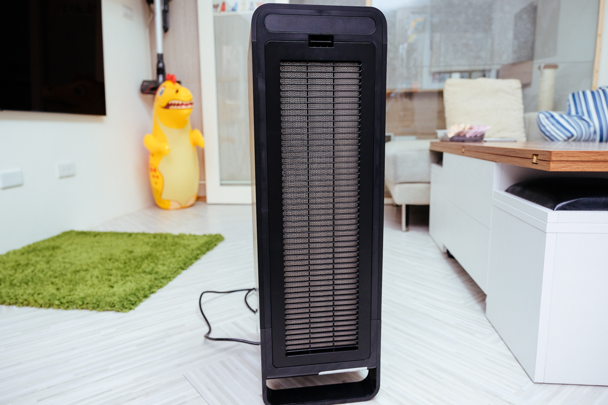 德國百靈推出的這款空氣清淨機,是採用空淨機較少見的全黑設計(大部份都是設計為白色或淺色系居多),不過阿湯覺得黑色的設計有個很大好處,別於一般白色機種,不用擔心機身泛黃,簡約設計適合融入各種生活空間。