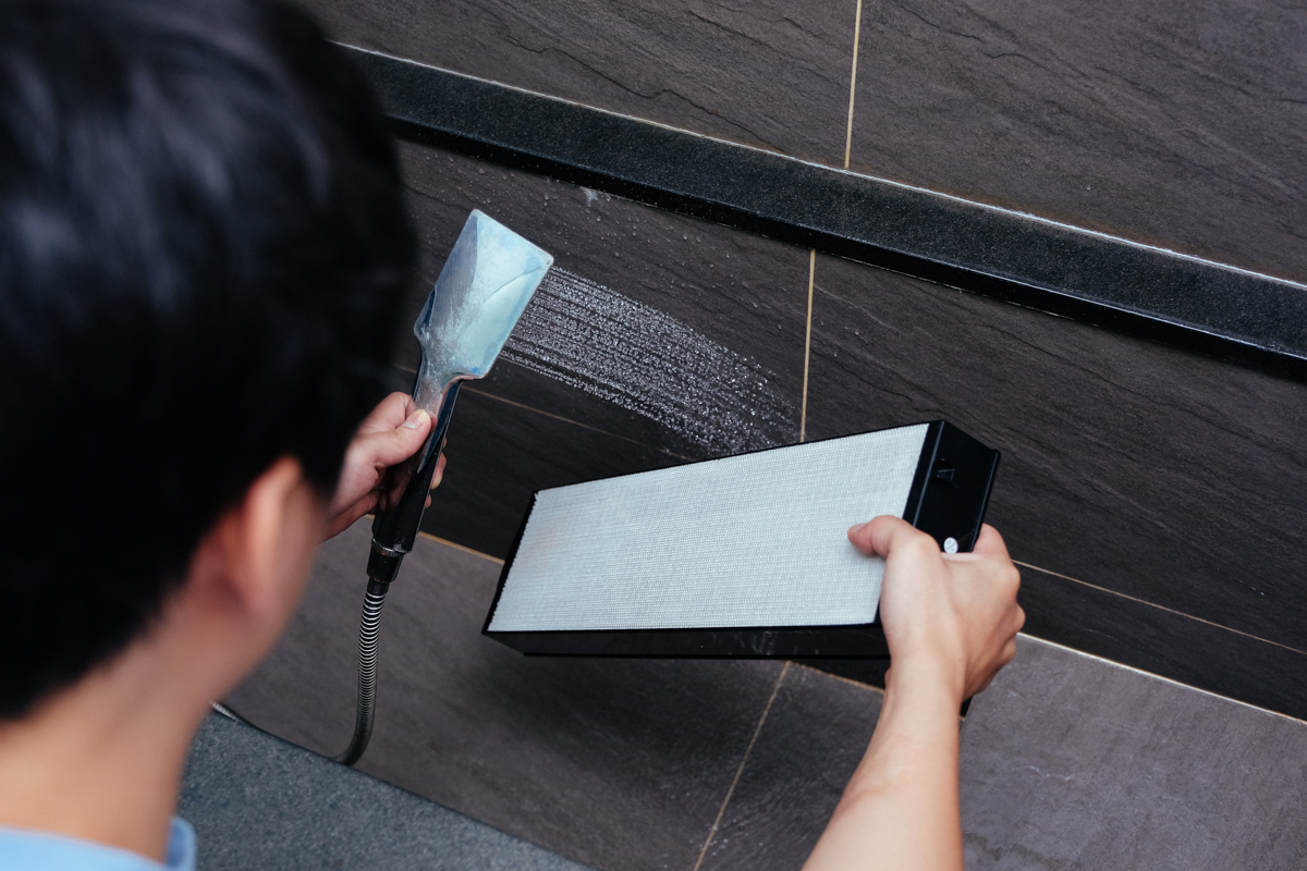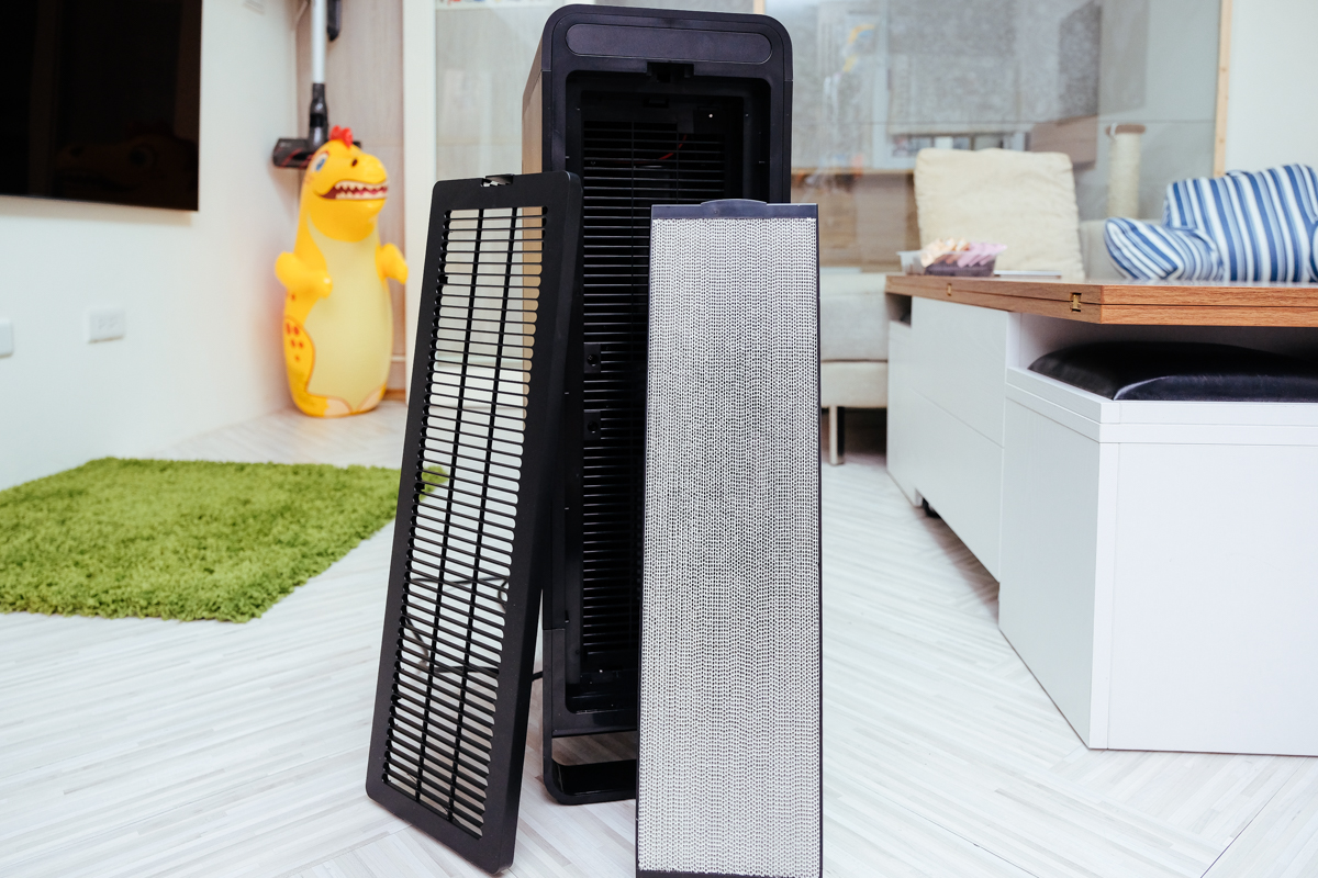 前方的 VOC 顆粒活性碳濾網官方建議是 6 個月更換一次(以每天 12 小時來算),不過要看你的使用時間跟習慣,如果一天在家只用 7~8 小時,那麼大約可以 10 個月再換一次,濾網相當的重要,如果沒有定期的檢查更換可是或大大的降低濾淨的效果。