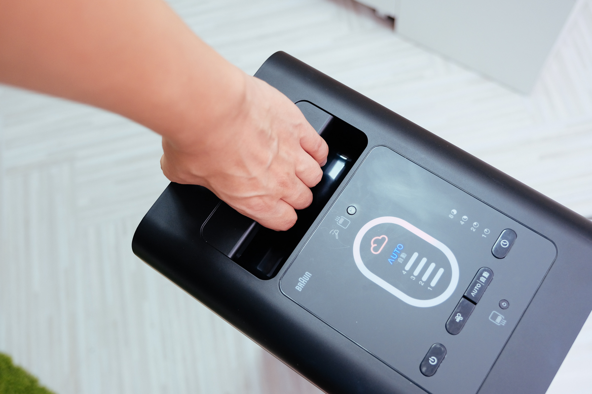 Braun 德國百靈 SensorAir 空氣清淨機的操作面板設計於上方,我們往下來一一介紹。