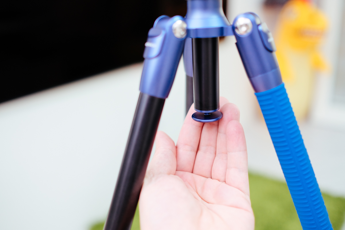 然後就可以將拆卸的腳柱跟中柱結合在一起囉,除了可以做為單腳架使用外,也可以做為自拍桿來使用,功用真的很多。