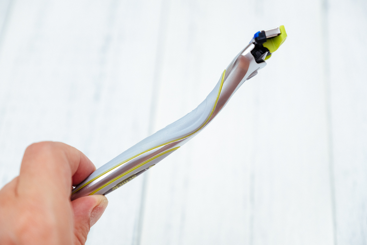 刀座部分採用金屬材質,並在主要會握住的部份加入止滑橡膠,因此也不用擔心沾到水後濕濕的會手滑難握。