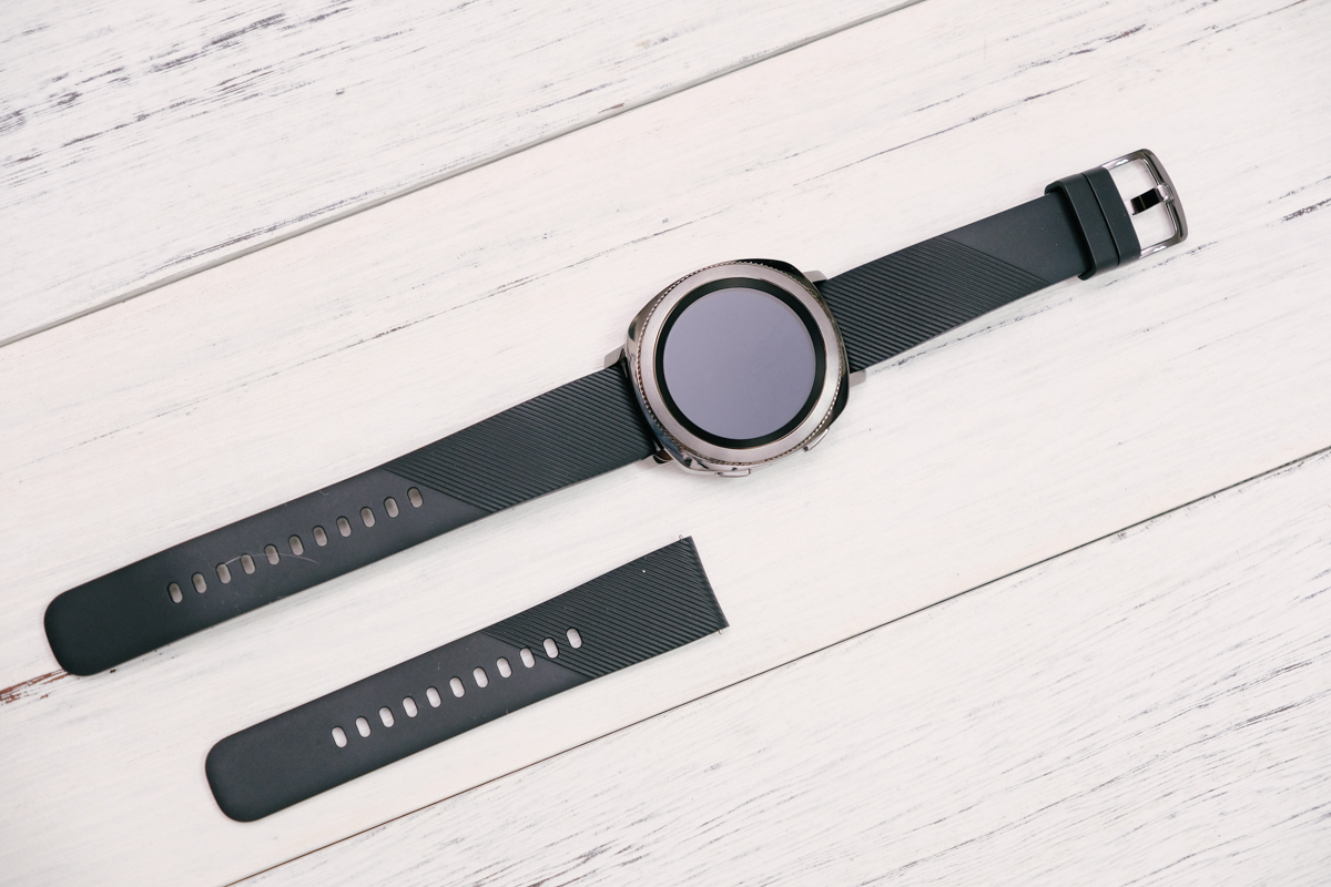 就不要太拐彎抹角,直接來看看 Samsung Gear Sport 的內含物吧,包括充電變壓器、無線充電座(錶用)、保固卡及簡易手冊,而錶帶的部份則是額外附有一條較短的版本,是給手較小或女生使用的,不過錶帶採用的是通用尺吋,因此市面上的錶帶也都能替換使用沒問題。