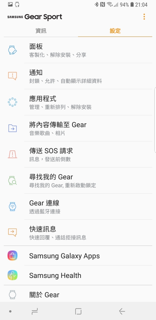 Galaxy Wearable 可以用在設定 Gear Sport 外,像是 Galaxy Watch、Gear Fit2(含 Pro)及 Gear iconx 使用。