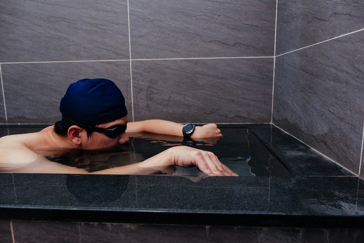 雖然可以偵測游泳,不過阿湯最近剛好感冒還沒痊癒,只好在家裡放溫水假裝游給大家看,以後就會直接去游泳池了!!