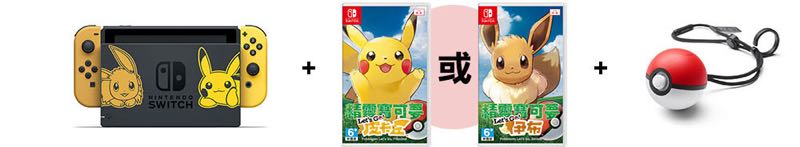 - 內容包含:Nintendo Switch 主機、『精靈寶可夢 Let's Go!皮卡丘』或『精靈寶可夢 Let's Go!伊布』遊戲軟體、精靈球 Plus