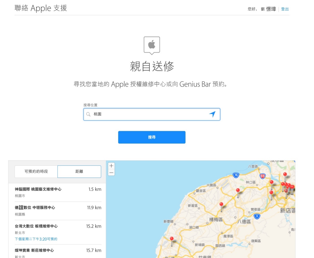 透過支援中心選擇 iPhone 再選擇電池相關,進入更換電池,就可以查詢授權維修中心地點。
