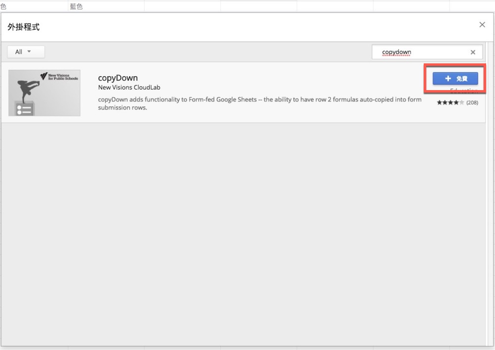 搜尋 copydown 後直接點擊加入。