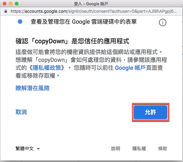 再允許權限就可以了。