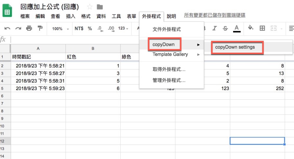 Google 表單回應內容外掛 copydown 使用教學: