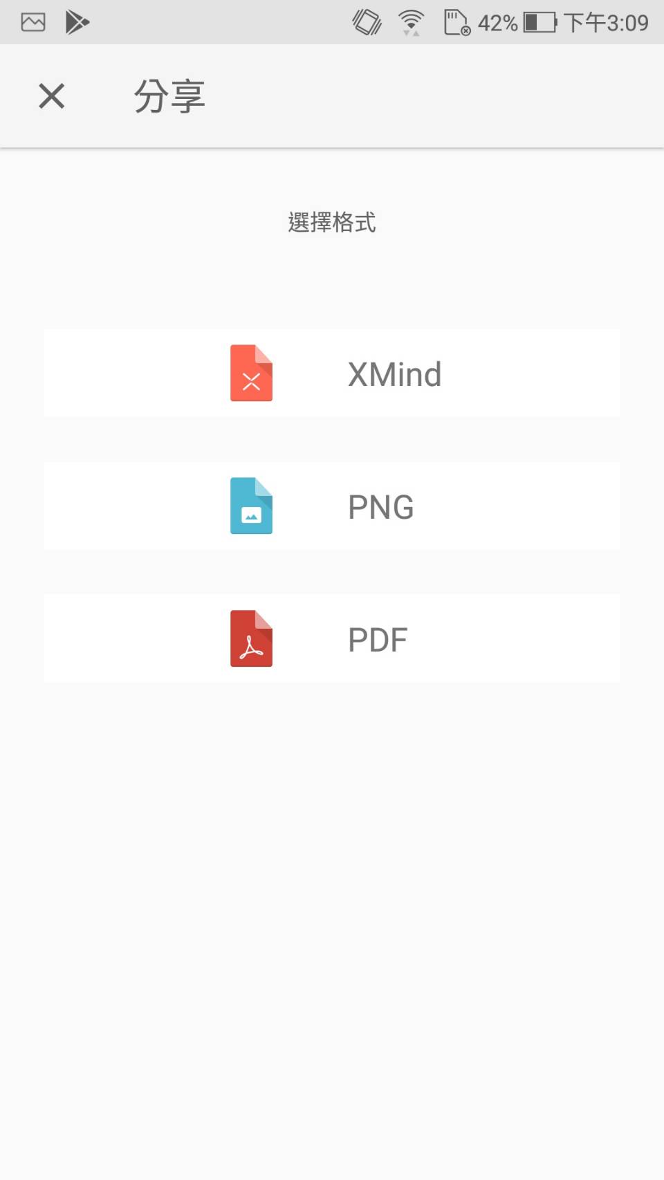 製作完成的心智圖或流程圖,可以分享與傳送為 xmind 檔案,或是圖片與 PDF(消除浮水印須付費)。