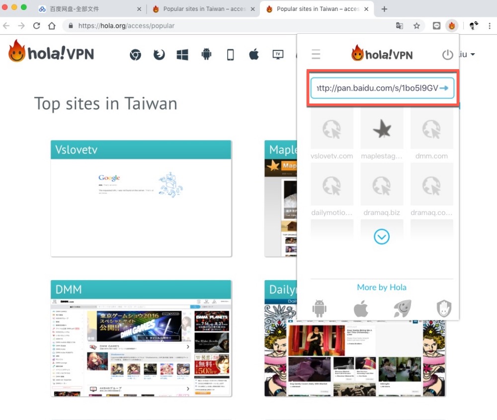然後就會出現這樣的畫面,點擊那個 Hola 的圖示後再點擊「Most popular in Taiwan」那一行字。