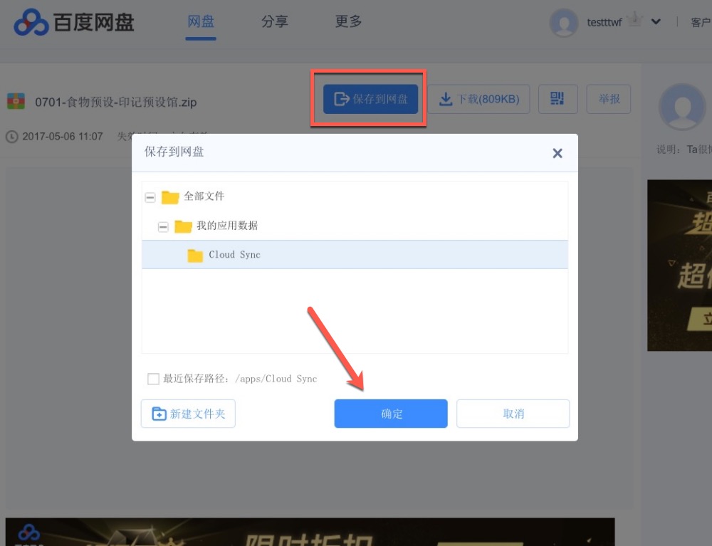 當你進到百度網盤後,別急著直接下載,因為透過 VPN 下載速度會非常的慢,建議將檔案先保存到自己的網盤上,再斷開 VPN 去自己的網盤空間裡下載比較快。