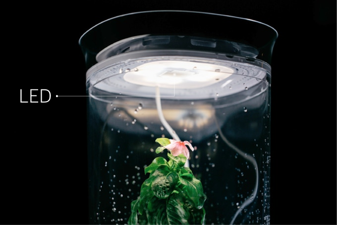 智慧溫室 Bloomengine 是一個像是小檯燈一樣的外型,底部可以儲水、上方有 LED 燈光、中央凹槽是可以放置用水就還原的壓縮土壤,溫室中更設計了排風扇能夠給植物最舒服的溫度和環境,也能讓開花後的香味馨香傳出,用戶甚至還能透過頂部的觸控按鈕來調整情境或是水孔設計來模擬下雨般的為植物進行補水。