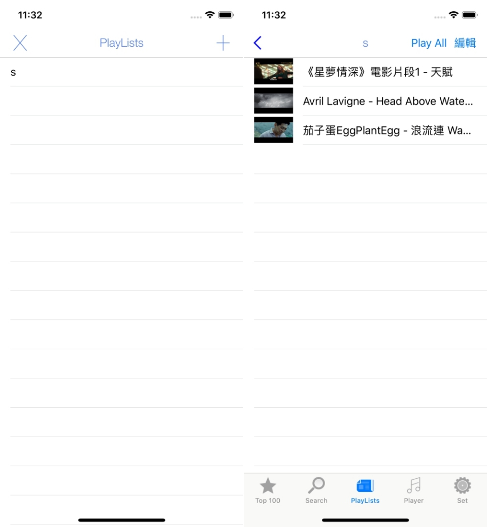 如果是建立播放清單可以自行無限制的編輯不同的播放列表,然後點開後就可以 Play All。