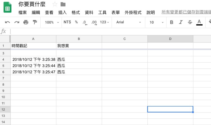 在回覆內容裡也可以確認到西瓜確實填了三次。