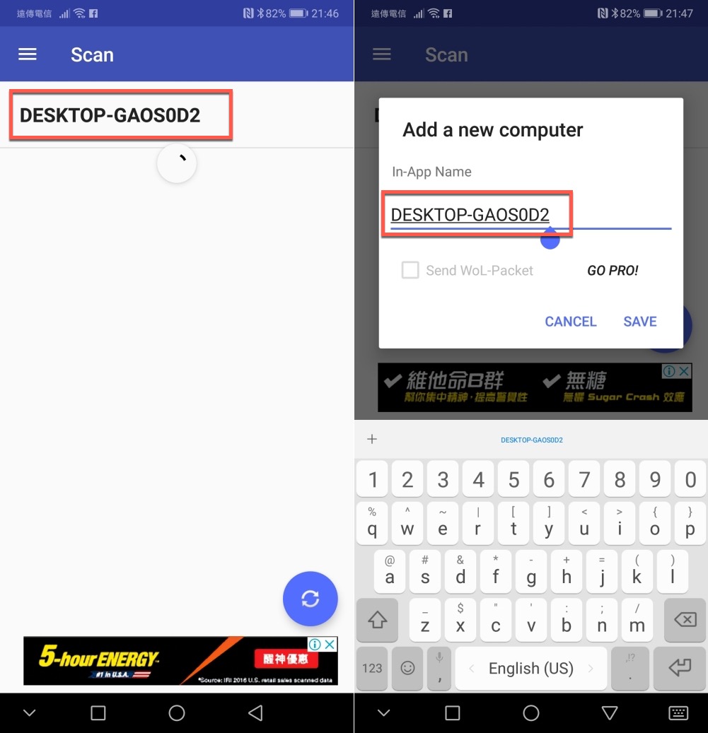 先安裝對應的 Android APP Remote Fingerprint Unlock 後,進行 Scan,會找到你已經有安裝對應軟體的電腦,按一下後就可以為你的電腦進行命名,以便辨識是哪一台要解鎖。