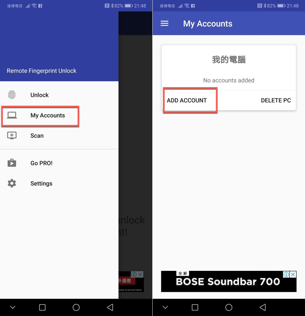 電腦端安裝完軟體就沒事了,沒有任何要設定的內容,接下來是手機的部份,再次強調,手機要具有指紋辨識功能且已啟用,你才能進行設定。