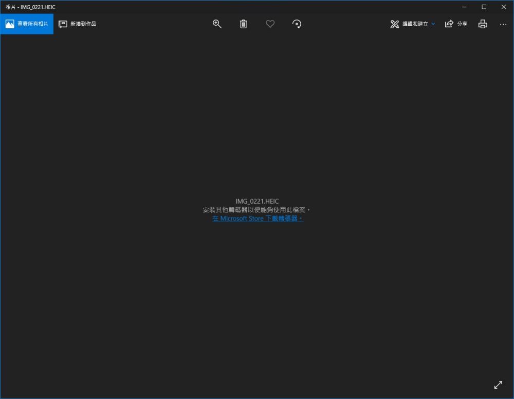 在預設的情況下,當你開啟存為 HEIC 副檔名的 iPhone 照片時,會出現這樣的畫面,要你去 Microsoft Store 下載轉碼器就可以了。