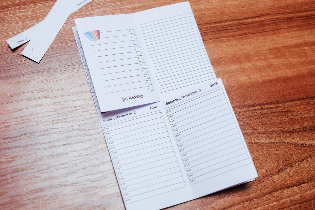 以旅遊來說,可以依日期來設定頁面,比如出去四天,可以前四頁選擇每天的行程表。