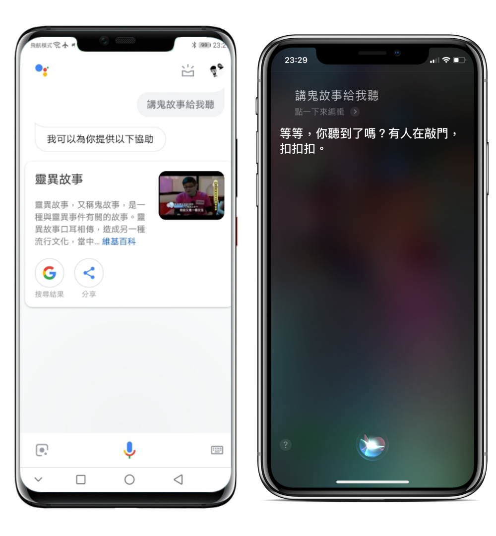 不過要他們講鬼故事時,Google 語音助理目前還沒有建立這一項,而 Siri 則是早早就有建立。