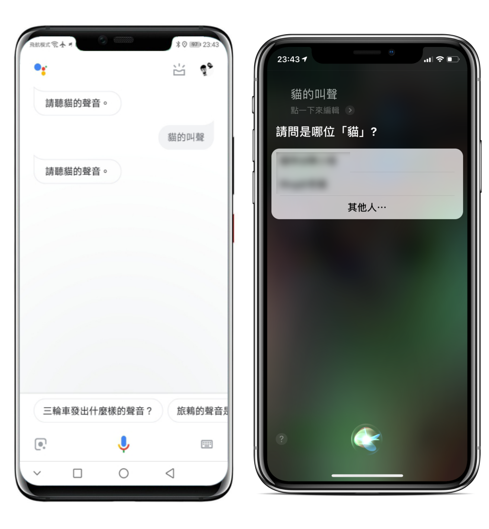 下面開始左圖為 Google 語音助理,右圖為 Siri 語音助理。