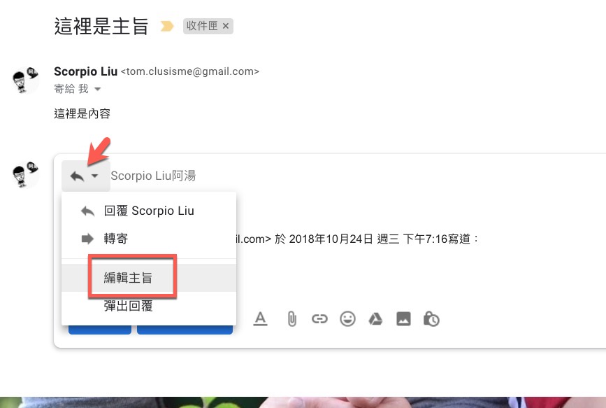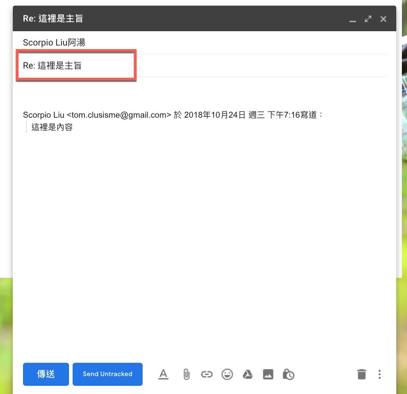 Gmail 在電腦版回覆/轉寄重新修改主旨