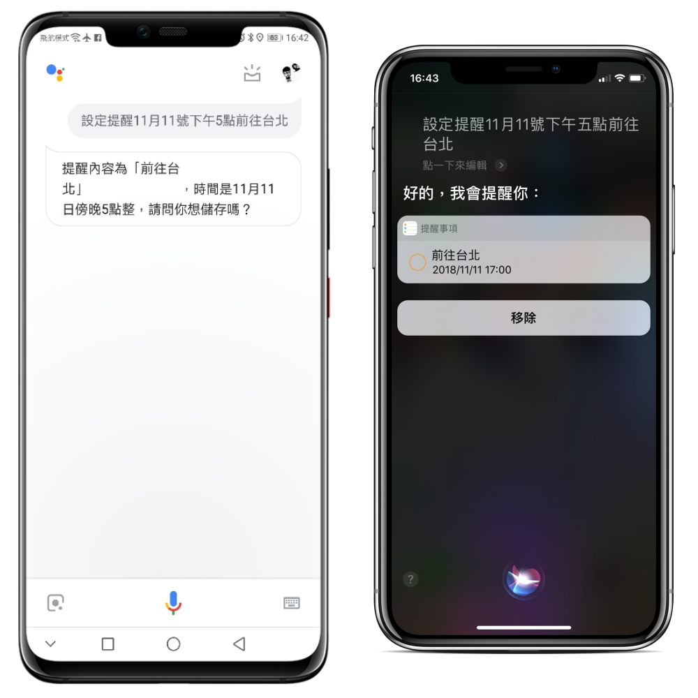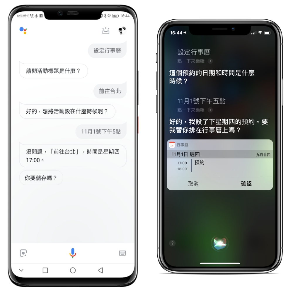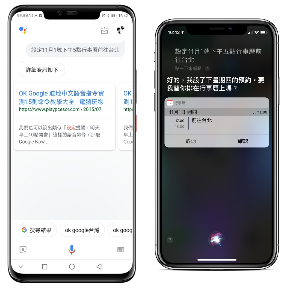 在行事曆的部份二邊剛好各有優缺點,我們來看看整句話的設定,很明顯的 Siri 較聰明一些,其實我沒有下很複雜的指令。