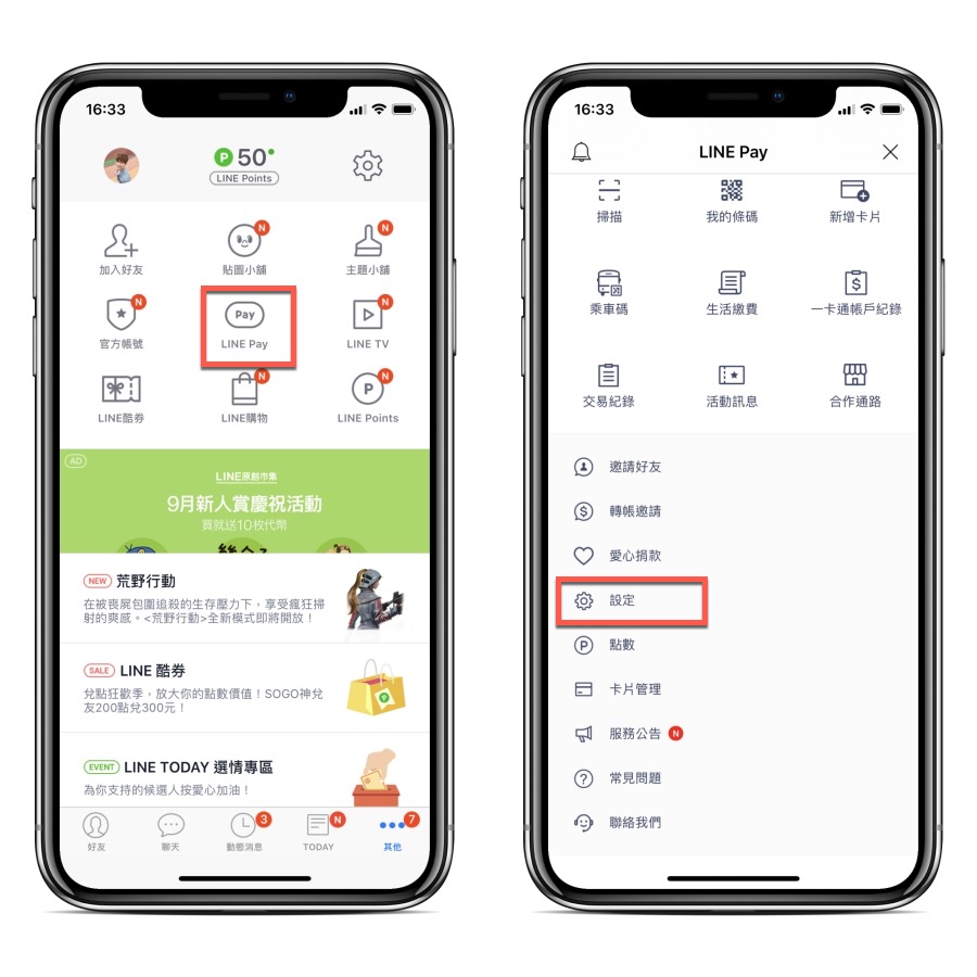 先進入 LINE Pay(當然要有啟用),再下拉找到「設定」。