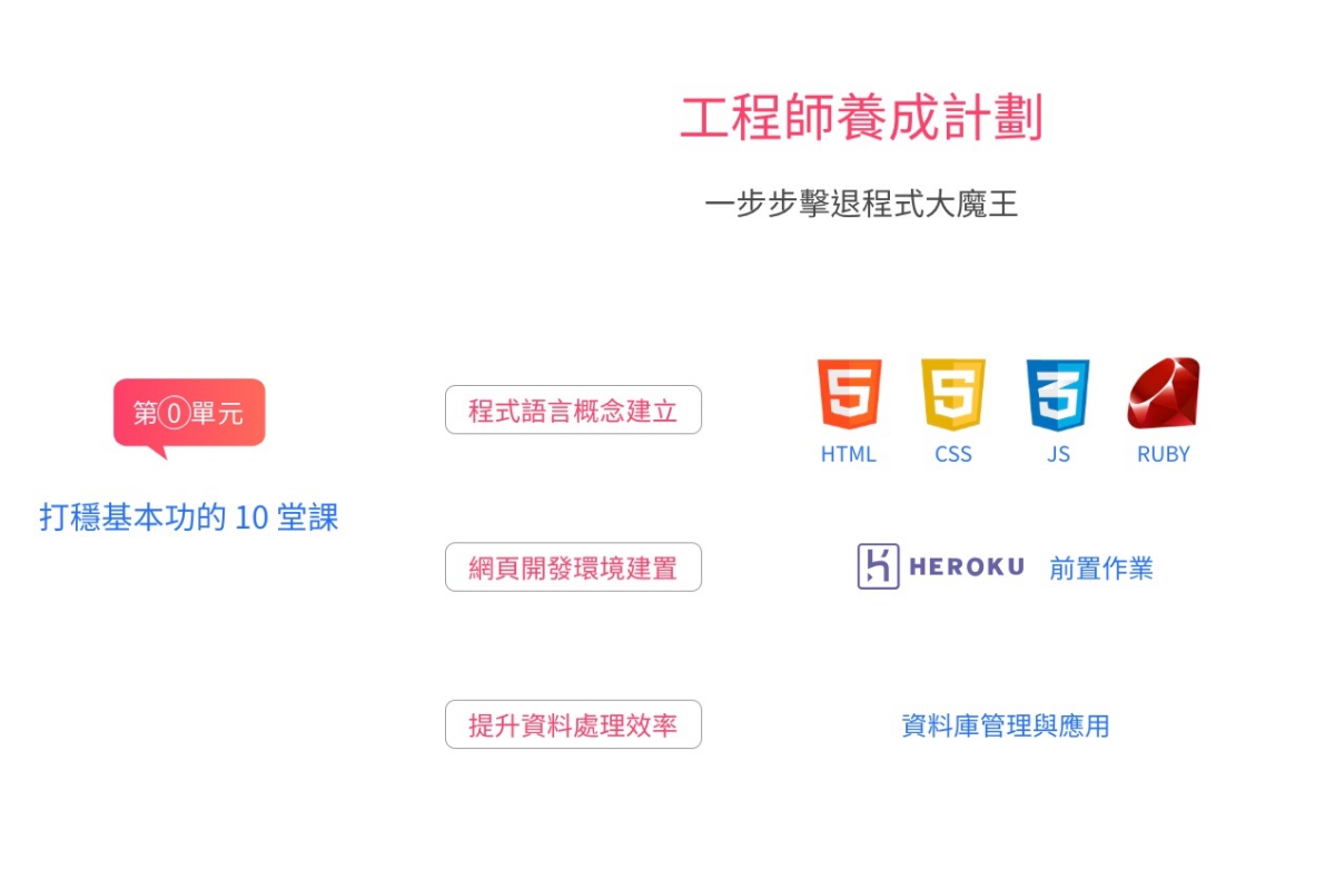 如果對於這麼容易上手的課程有興趣的話,他們的線上課程也已經火熱的推出啦,阿湯往下也提供他們推出的課程大綱給大家做為參考,想進修自己的真的不要錯過,特別是 Ruby 工程師其實很搶手(因為冷門),好好的學個一年應該就可以轉職升薪了吧(笑)。