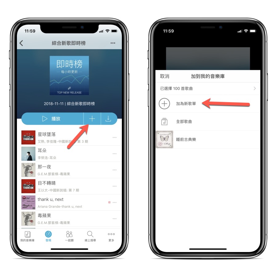 首先 KKBOX 無法用 Siri 自由的控制要播放什麼,只能播放預設好的歌單,雖然有點可惜,但總比完全無法使用來的好,先找到想要播放的歌然後一一的加入歌單,你可以建立自己的任意歌單都行,阿湯只是先隨便用即時榜來示範。