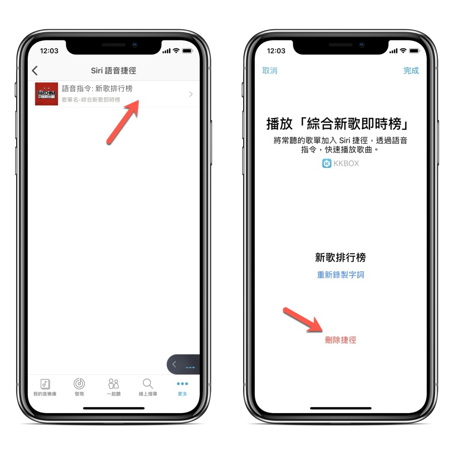 再選擇要刪除的歌單,進入後就可以刪除對應的捷徑功能了,恭喜大家又學會了一招,主要阿湯想減少更多開啟手機的時間,透過語音指令完成更多事。