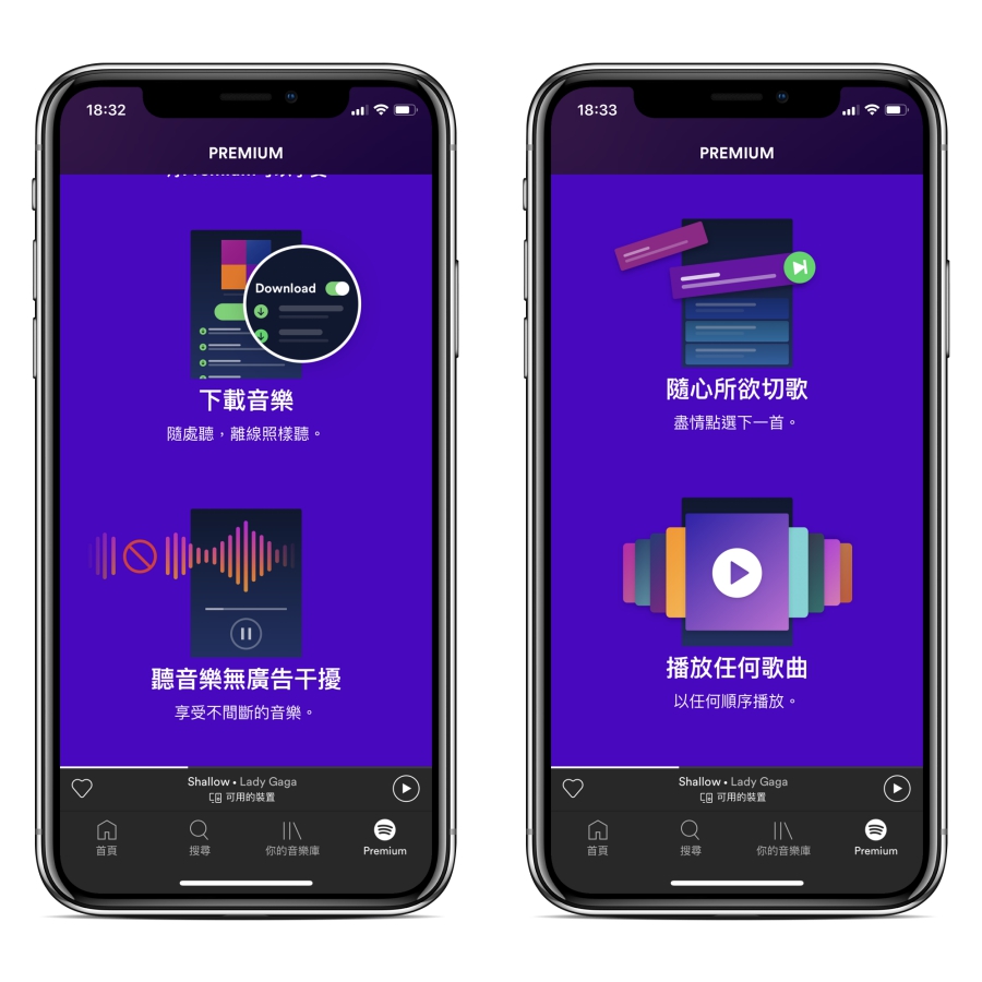 如果你沒 Spotify 付費會員現在可以透過手機安裝 Spotify 的 APP 看看,會發現可以免費聽了,不過付費版的功能更多,且音質更好,往下來看看有什麼主要差異。