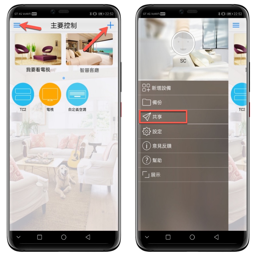 加入完後點擊左上角的選單,再點擊共享。