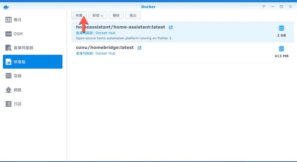 然後在映像檔這個頁籤裡,選擇剛剛下載的 homeassistant 映像檔,按下佈署。