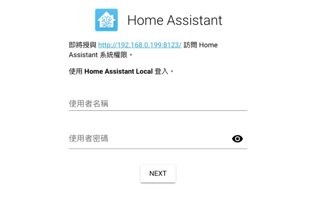 當 HA 建立好後,只要輸入你 NAS 的 IP 加上 8123 連接埠就可以開啟頁面,在網址上輸入 http://nas 的 ip:8123/,首次進入會要求你設定一組帳密,用來登入這頁面使用的。