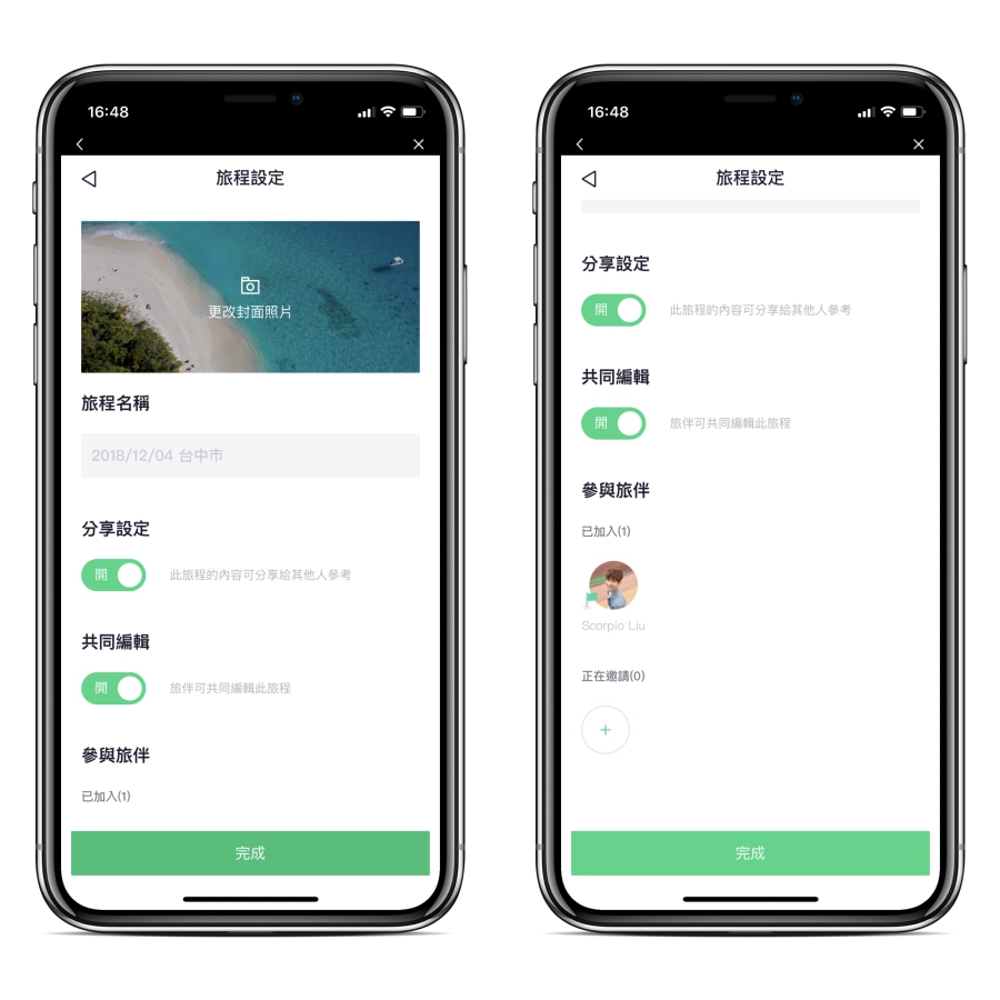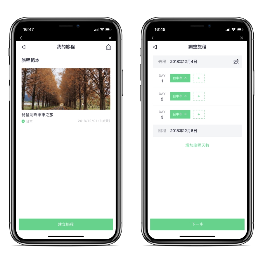 最後在規劃旅程時,就可以建立一個行程,然後選擇日期、時間、地點等,做好基本設定。